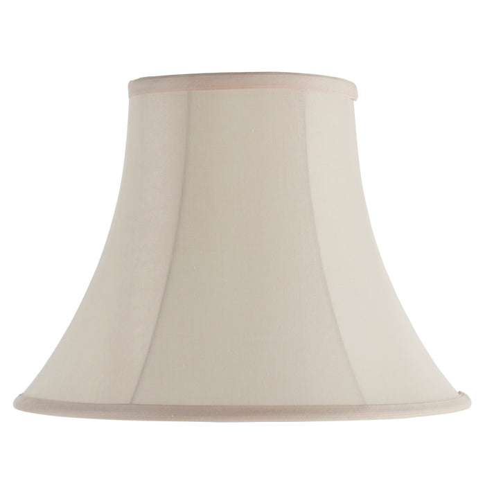 Product DescriptionThis 14 inch handmade cream lamp shade is shaped in a round bell design and has a double folded trim on the top and bottom. For use with a variety of lamp bases and available in a choice of sizes
