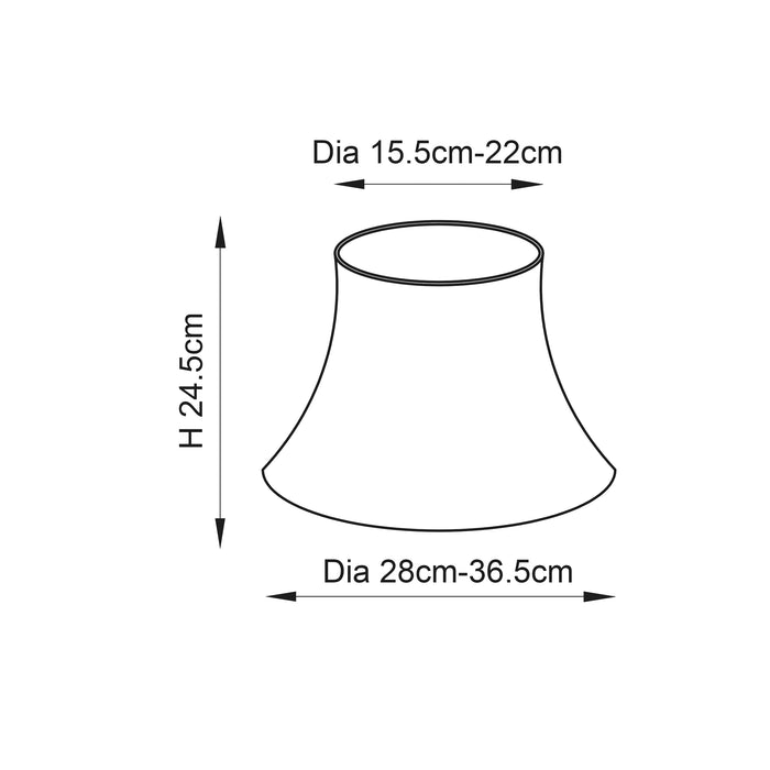 Product DescriptionThe 14 inch Celia handmade lamp shade is a balloon lined bowed oval in a cream fabric with a subtle woven trim on the top and bottom edges. Available in a choice of sizes