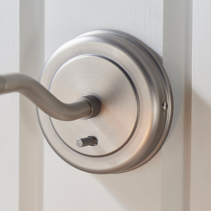 Product DescriptionAn authentic 'resto' style adjustable wall light, finished in brushed silver paint with authentic knurled lamp holder details and clear glass shades. Featuring an adjustable knuckle and accessible on/off switch, pair this wall light with filament LED lamps for that perfect industrial style. The perfect addition for today's stylish homes to create that on trend bar, bistro look.