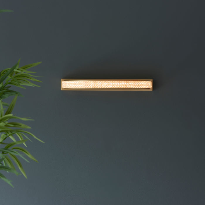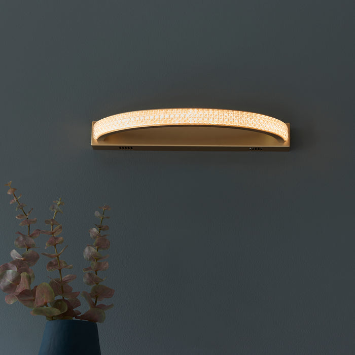 Product DescriptionContemporary designer look wall light with satin gold painted finish. This stunning wall light is encrusted with thousands of clear faceted reflective detail. Glamorous detail creating luxurious style with matching pendant and semi flush.