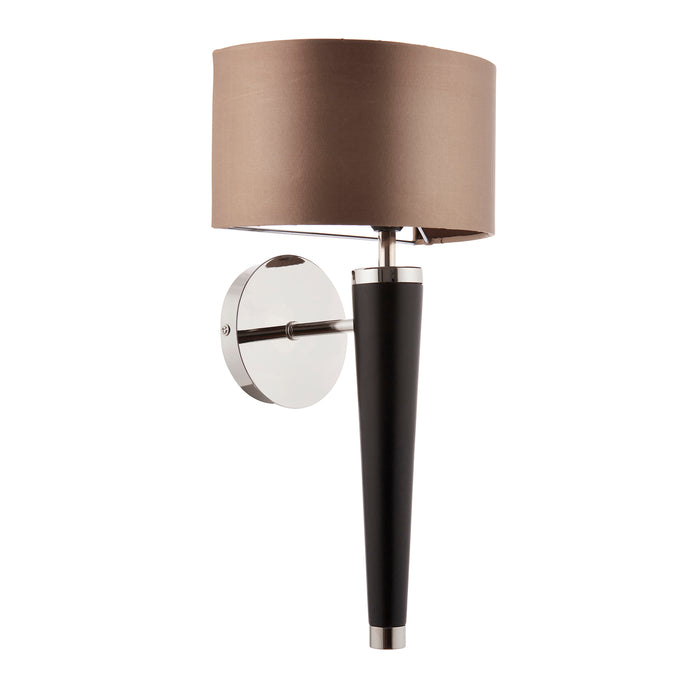 Endon CORVINA-1WB Corvina 1lt Wall Dark wood, bright nickel plate & mink fabric 40W E14 golf (Required)