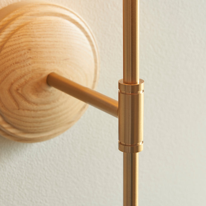 Product DescriptionA natural Ash wood wall back with understated T shape arm. Perfect for many areas of your home, finished in brushed aged brass. Complete the look with one of our decorative fabric shades.
