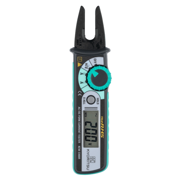 The KEW2300R fork current tester is a handy pocket-sized tester that is great for crowded connection boxes, where cables are very short, and space is too limited to clamp cables using with a traditional clamp meter.