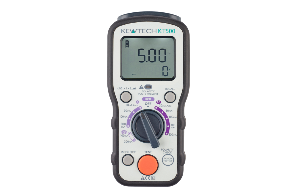 The KT500 single function RCD tester enables testing of both A & AC type RCDs.