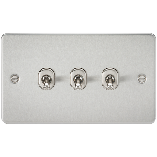 Knightsbridge FP3TOGBC Flat Plate 10AX 3G 2-Way Toggle Switch – Brushed Chrome The Knightsbridge FP3TOGBC 3-Gang 2-Way Toggle Switch is a premium c...
