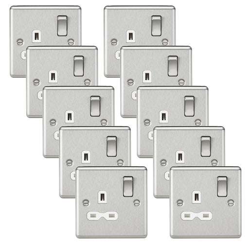 Knightsbridge CL7BCWx10 Rounded Edge 13A 1G DP Switched Socket - Brushed Chrome + White Insert (10 Pack)