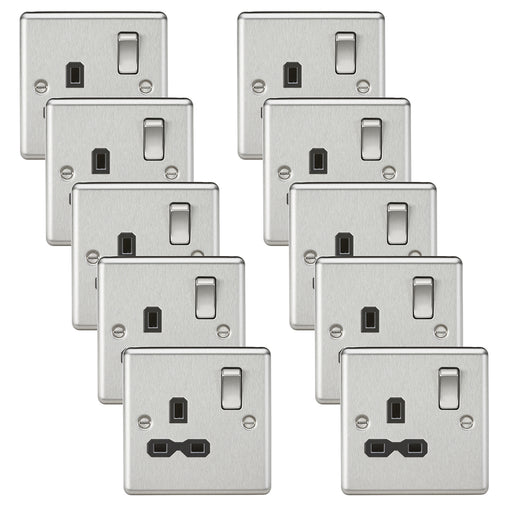 Knightsbridge CL7BCx10 Rounded Edge 13A 1G DP Switched Socket - Brushed Chrome + Black Insert (10 Pack)