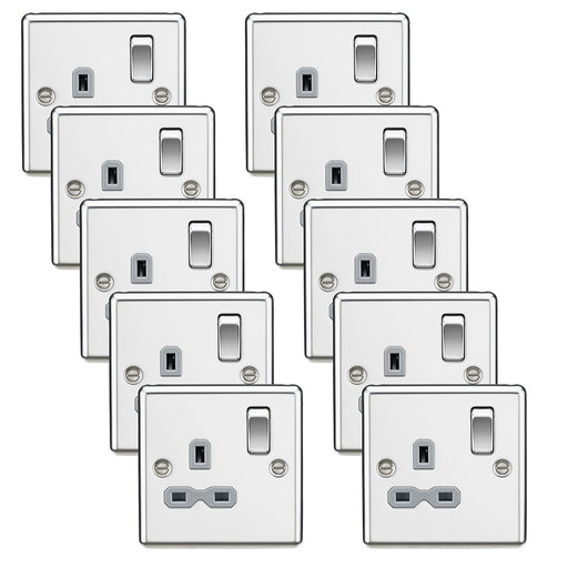 Knightsbridge CL7PCGx10 Rounded Edge 13A 1G DP Switched Socket - Polished Chrome + Grey Insert (10 Pack)