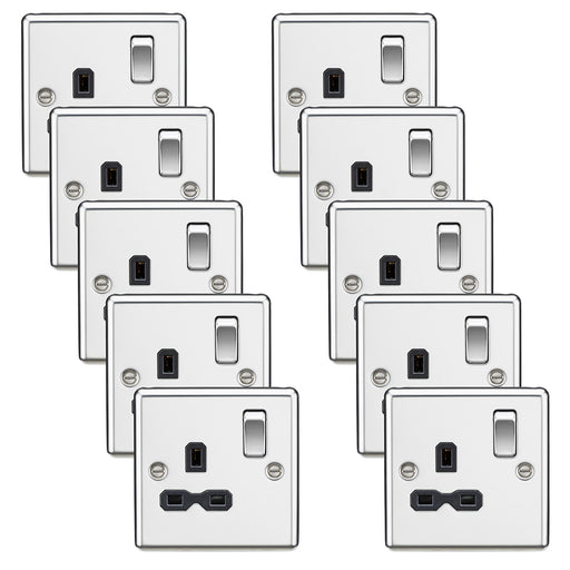 Knightsbridge CL7PCx10 Rounded Edge 13A 1G DP Switched Socket - Polished Chrome + Black Insert (10 Pack)
