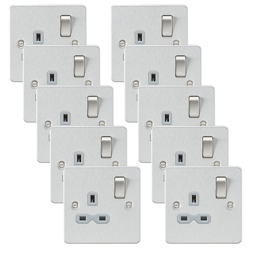 Knightsbridge FPR7000BCGx10 Flat Plate 13A 1G DP Switch Socket - Brushed Chrome + Grey Insert (10 Pack)