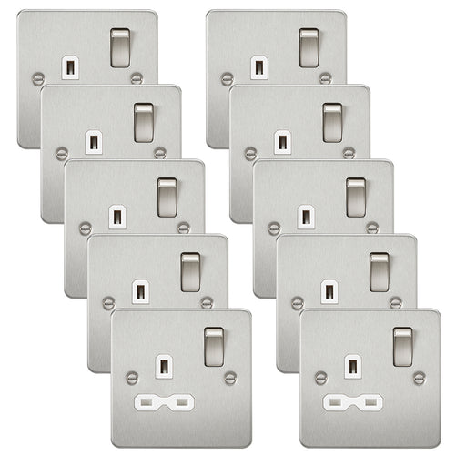 Knightsbridge FPR7000BCWx10 Flat Plate 13A 1G DP Switch Socket - Brushed Chrome + White Insert (10 Pack)