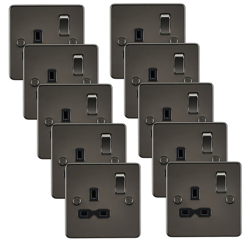 Knightsbridge FPR7000GMx10 Flat Plate 13A 1G DP Switch Socket - Gunmetal + Black Insert (10 Pack)