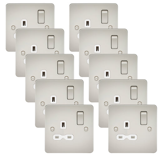 Knightsbridge FPR7000PLWx10 Flat Plate 13A 1G DP Switch Socket - Pearl + White Insert (10 Pack)
