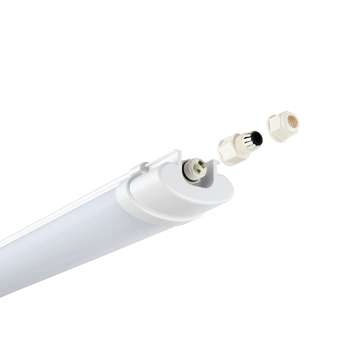 Product DescriptionThe Reeve Connect is a self contained, budget, LED batten. This anti-corrosive fitting is IP65 rated and benefits from the ability to be linked together. A maximum of 15 be linked together. This fitting is ideal where space for power feeds are limited.