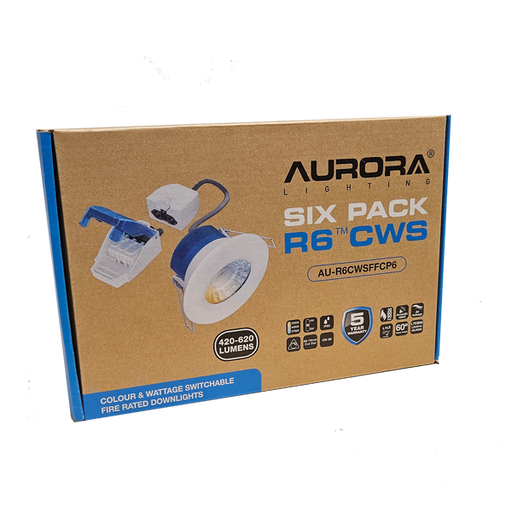 Aurora AU-R6CWSFFCP6 230V 4W/6W LED IP65 Fixed Dimmable Fire Rated Downlight FastRFix White 3000K/4000K/5700K (6 Pack) Product Description Aurora ...