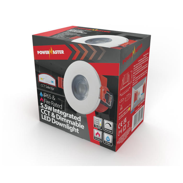 Powermaster S15344 5.5W IP65 Fire Rated CCT Downlight White 3000K/4000K/6500K