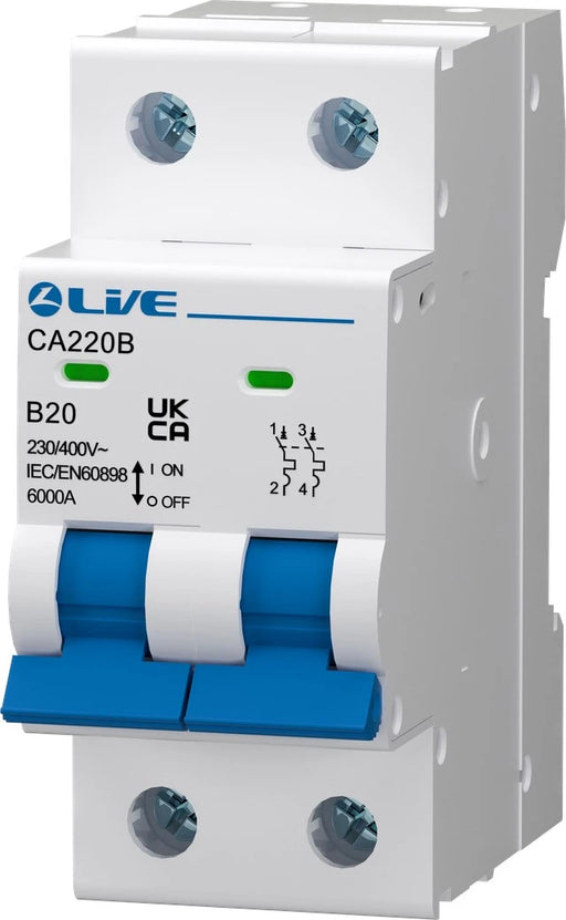 LIVE Electrical CA220B Double Pole 20A B Curve 6kA MCB