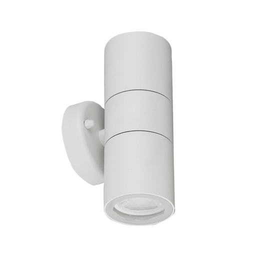 Knightsbridge OWALL2W 230V IP54 GU10 Up and Down Wall Light - White Up and down wall light in powder coated white finish. Ideal to brighten up ou...