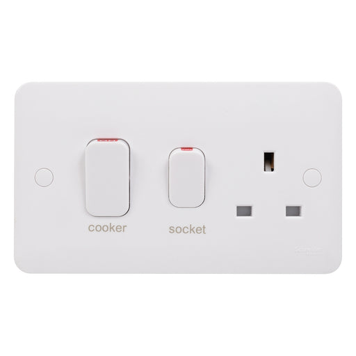 Schneider Electric GGBL4001S Lisse White Moulded 45A DP Cooker Control Unit with 13A Socket & LED (Display Packaged)