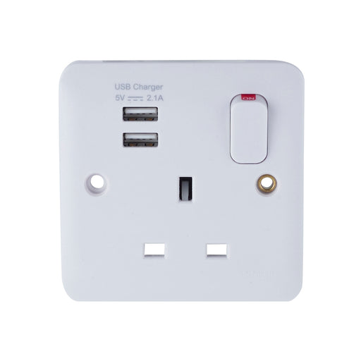 Schneider Electric GGBL30102USBAS Lisse White Moulded 13A 1G SP Switched Socket with 2xUSB 2.1A