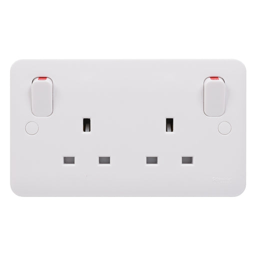 Schneider Electric GGBL3030S Lisse White Moulded 13A DP 2G Switched Socket with Outboard Rockers (Display Packaged)