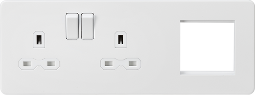 Knightsbridge SFR192RMW Screwless 13A 2G DP Socket with 2G Modular Combination Plate (Right) – Matt White The Knightsbridge SFR192RMW Screwless Mod...