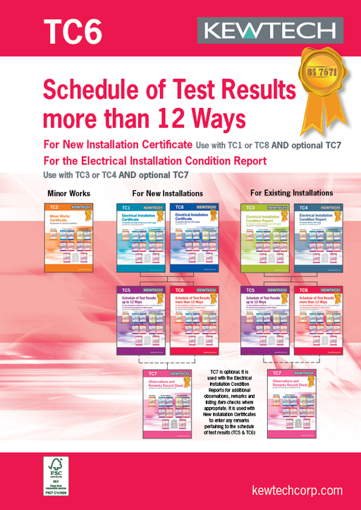 Kewtech TC6 Schedule of Test Results Upto 36 Ways (3 Phase) Make your documentation easy with the New Electrical Installation certification books ...