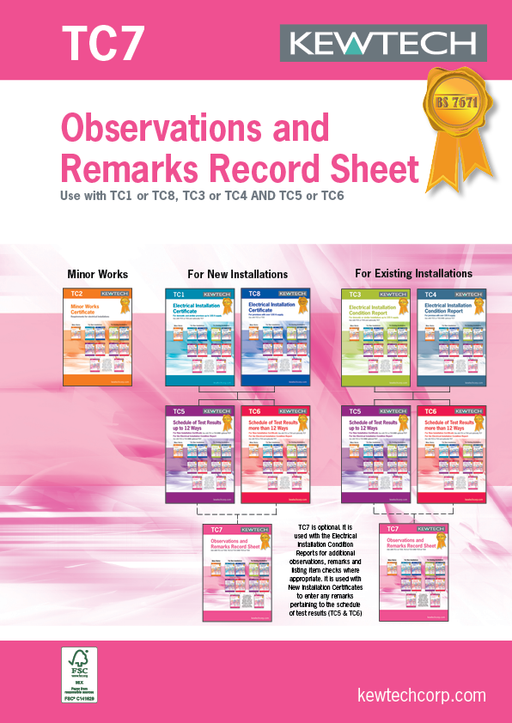 Kewtech TC7 Observation Record Sheet 40pgs