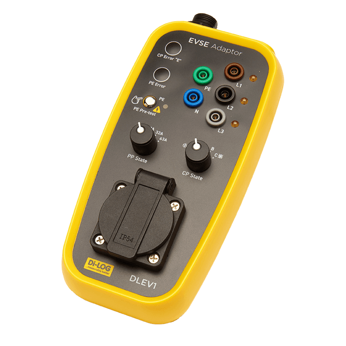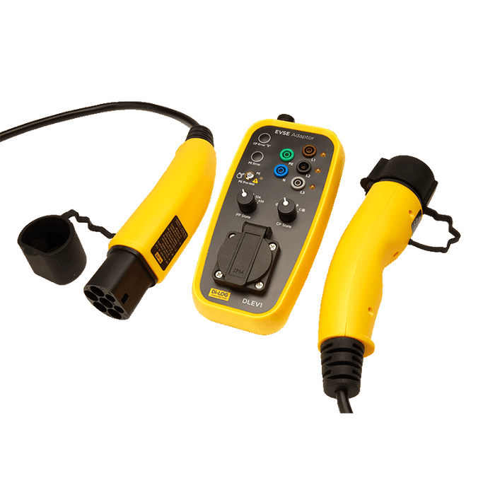 The DLEV1 has a 13A socket for MFT mains lead or can be used for inline load connection. In addition to this, there are also 4mm input terminals for single or 3-phase connections.The DLEV1 is universal to all Electrical Installation Multifunction Testers, such as the Di-LOG DL9130EV and can even be purchased as part of our complete EV test kit, the DL9130EVKIT
