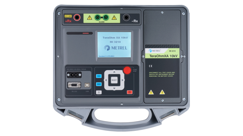 MI 3210 TeraOhm XA 10 kV is a portable, battery or mains powered test instrument with excellent IP protection (IP65), intended for diagnosing of Insulation Resistance by using high DC test voltages of up to 10 kV. Because of its robustness (CAT IV protection) and high immunity to radiated RF fields it is best suited for industrial environment..
