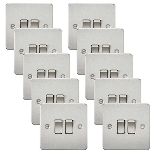 Knightsbridge FP3000BCx10 Flat Plate 10AX 2G 2-Way Switch - Brushed Chrome (10 Pack)