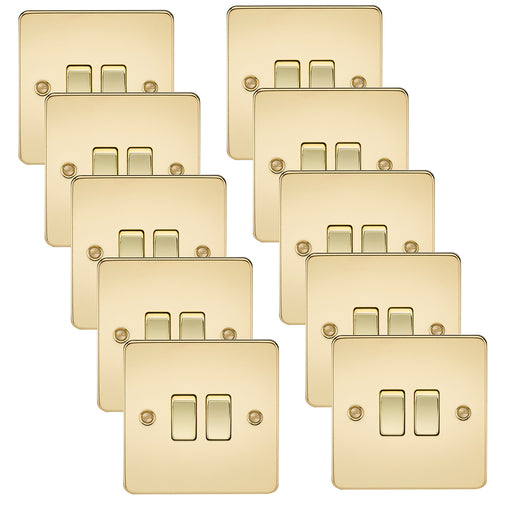 Knightsbridge FP3000PBx10 Flat Plate 10AX 2G 2-Way Switch - Polished Brass (10 Pack)