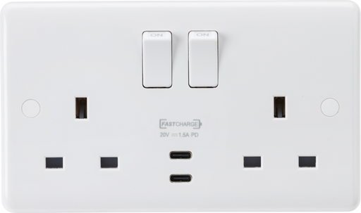 Knightsbridge CU9930 White Curved Edge 13A 2G Double Pole Switched Socket with Dual USB-C Fast Charge The Knightsbridge CU9930 Double Socket combin...
