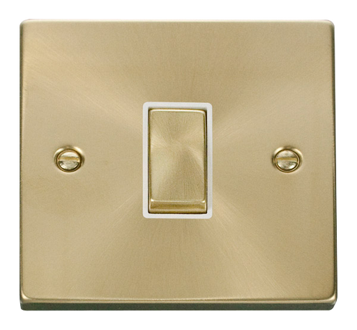 Click Deco VPSB411WH Victorian 10AX Ingot 1-Gang 2-Way Plate Switch - Satin Brass (White)