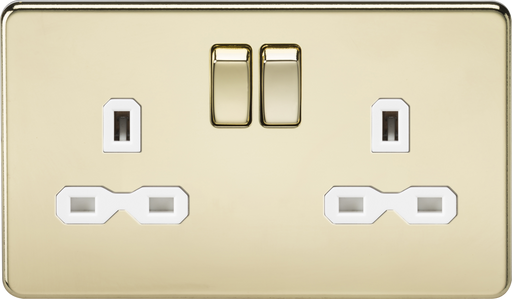 Knightsbridge SFR9000PBW Screwless 13A 2G DP Switched Socket - Polished Brass + White Insert