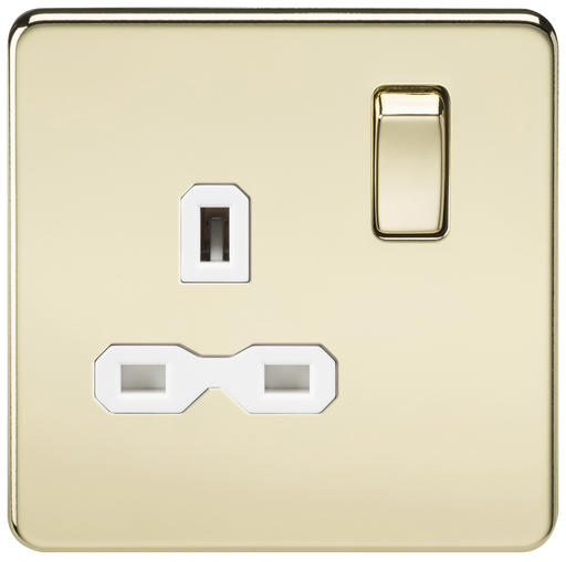 Knightsbridge SFR7000PBW Screwless 13A 1G DP Switched Socket - Polished Brass + White Insert
