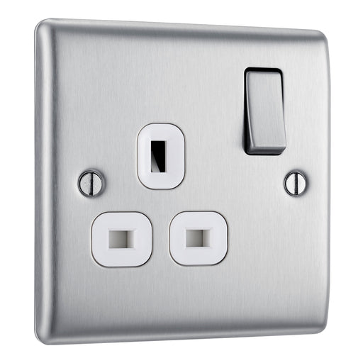 BG NBS21W Nexus Metal Single Socket 13A - White Insert - Brushed Steel