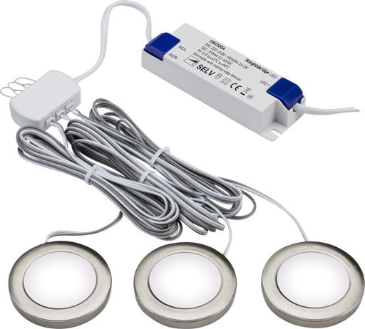 Knightsbridge UNDKIT3BCCW 230V IP20 2.5W LED Dimmable Under Cabinet Lights Brushed Chrome 4000K - Pack of 3