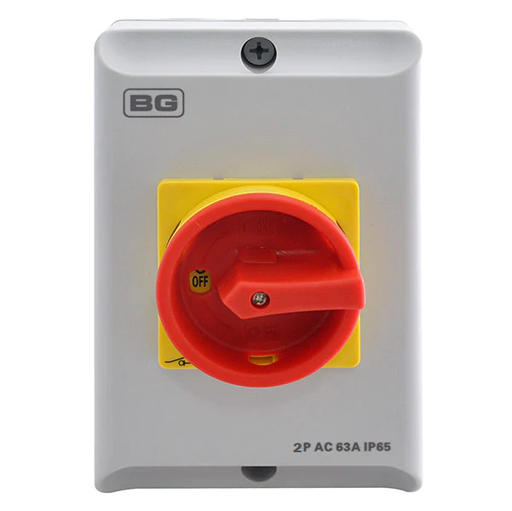 BG 63A 2 Pole AC IP65 Rotary Isolator Features of the Rotary Isolators range Red/Yellow handle lockable with padlock Captive retained cover scr...