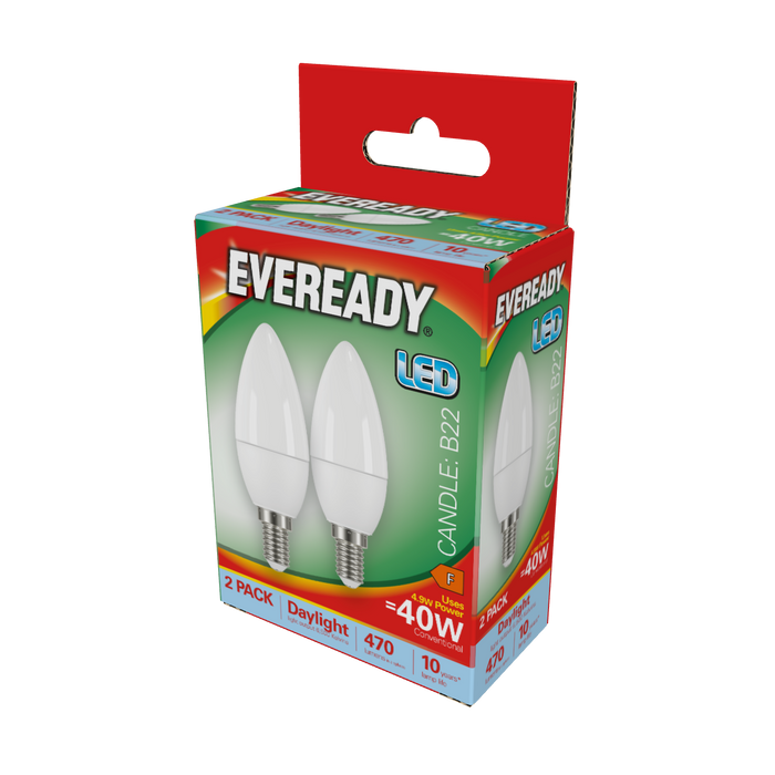 Eveready S15300 E14 SES Candle LED Bulb Opal 4.9W 470lm Daylight 6500K (2 Pack)