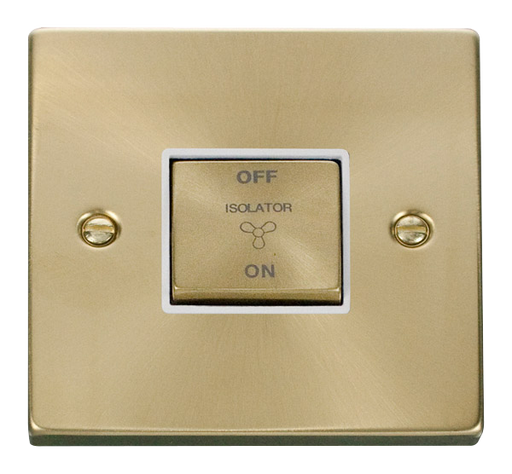 Click Deco VPSB520WH Victorian 10A Ingot 3 Pole Fan Isolation Plate Switch - Satin Brass (White) CLICK DECO - Decorative Metal Wiring Accessories...