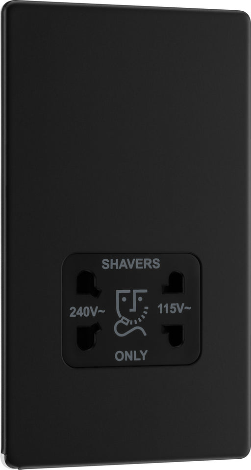 BG FFB20B Flatplate Screwless Dual Voltage Shaver Socket - Black Insert - Matt Black