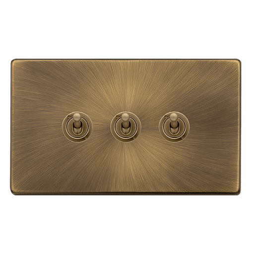 Click Deco VPAB423 Victorian 10AX 3-Gang 2-Way Toggle Plate Switch - Antique Brass CLICK DECO - Decorative Metal Wiring Accessories in Assorted P...