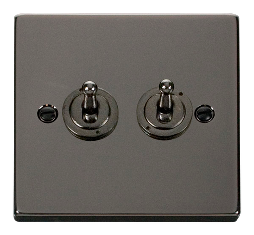 Click Deco VPBN422 Victorian 10AX 2-Gang 2-Way Toggle Plate Switch - Black Nickel