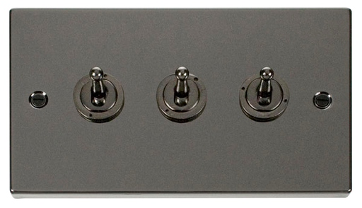 Click Deco VPBN423 Victorian 10AX 3-Gang 2-Way Toggle Plate Switch - Black Nickel CLICK DECO - Decorative Metal Wiring Accessories in Assorted Pl...