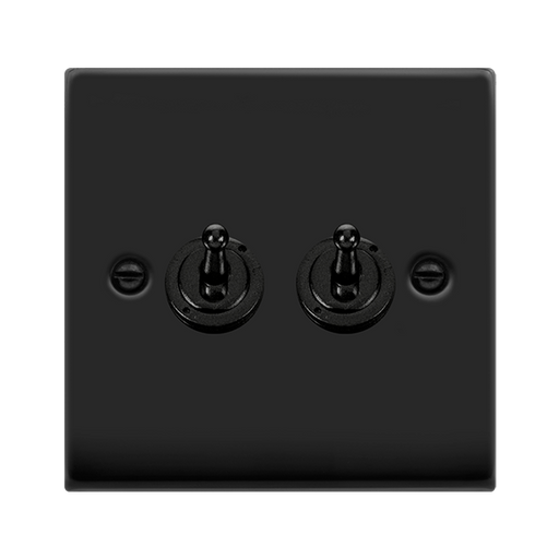 Click Deco VPMB422 Victorian 10AX 2-Gang 2-Way Toggle Plate Switch - Matt Black