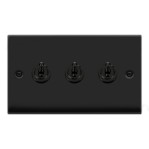 Click Deco VPMB423 Victorian 10AX 3-Gang 2-Way Toggle Plate Switch - Matt Black