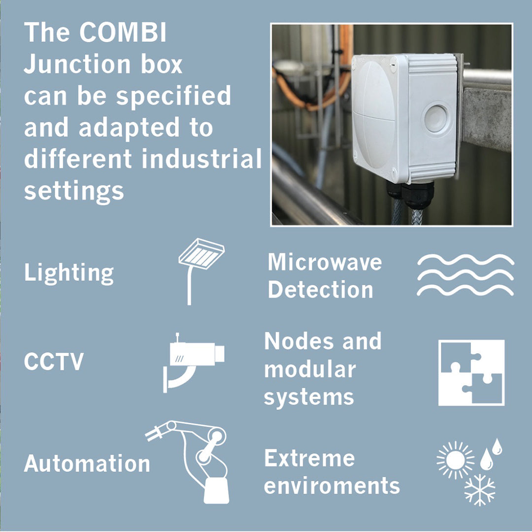 - High-quality material of the COMBI junction boxes is UV- and Ozone resistant, therefore suitable for inside as well as outside installations