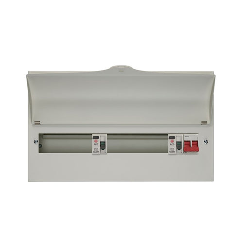 Wylex 14 Way High Integrity + 100A Main Switch, 2x80A 30mA Type A RCD with SPD Features Full metal enclosure Flexible busbar assembly 14W High ...