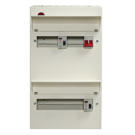Wylex 26 Way Duplex High Integrity + 100A Main Switch, 2x80A 30mA Type A RCD Features Full metal duplex enclosure Fixed busbar assembly 26W Hig...